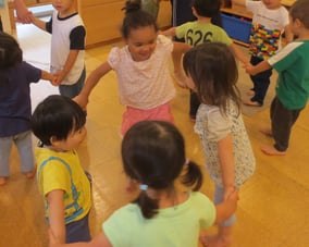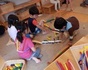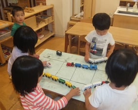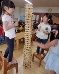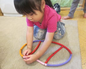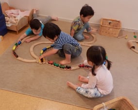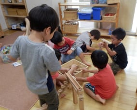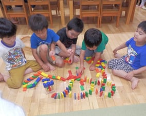 集団生活の中で友だちと一緒に行動することに喜びを見出す反面、人間関係の葛藤に悩む時期でもある為、自我がはっきりしていても、上手く表現できないところを優しく受け止め、友だちや人の存在をしっかり意識できるよう、遊び方や環境設定にも配慮しています。