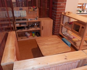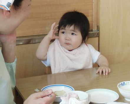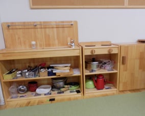 探索活動も盛んになり、歩行や言葉の獲得に向けて、急速に発達する時期ですが、それだけに一人ひとりの思いが強くなるので、自分の思い通りにいかない事も経験していきます。自我の芽生えと自立心を育む時期であることを理解し、一人ひとりの思いを受け止めながら、さりげなく援助し豊かな遊びへと展開できるよう援助しています。模倣活動が活発となり、お友達と簡単なおままごと遊びなども楽しむようになります。
