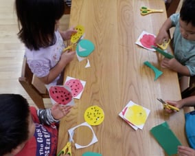 思考力や認識力が豊かになり自然事象や社会事象、文字などへの興味・関心も深まる時期なので、就学を意識した総合的な活動や様々な環境設定に留意し、学校生活にスムーズに適応できる援助を心がけています。