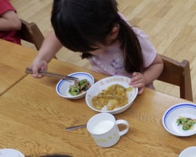 育児面では0歳児に引き続いて担当制を導入し、個々の成長発達に寄り添った関わりを大切にし、主体的にやろうとする気持ちを育んでいます。