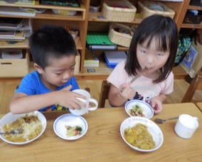 心身ともにめざましい発育・発達を示す時期なので、日々の保育の中で個々の思いを読み取りながら丁寧な対応を心がけ、少人数の仲間と一緒に遊ぶ楽しさをたくさん体験できるように環境を整えています。話し言葉の基礎ができて知的興味や関心も高まってくる時期です。また、大人の行動を真似たり、日常生活で体験したことを再現する時期など、子どもの基本的な運動機能の発達と共に「食事・睡眠・排泄・着脱」等がほぼ自立するので、タイミングを見計らって担当制を外します。